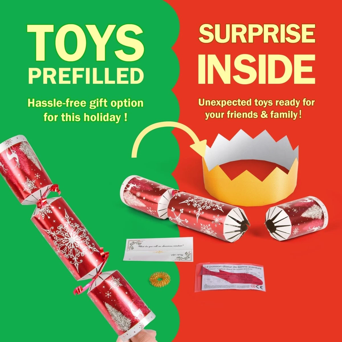 - Perfect Gift Idea: Ideal as party favor, Christmas party prizes and giveaways for Christmas games that will surely excite and delight your family and friends while pulling, opening the crackers and knowing what’s inside of these Christmas favors.