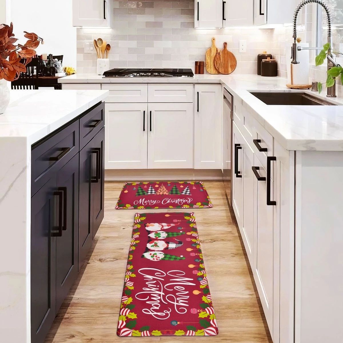 Red Christmas-Themed Anti-Fatigue & Non-Slip Kitchen Floor Matย