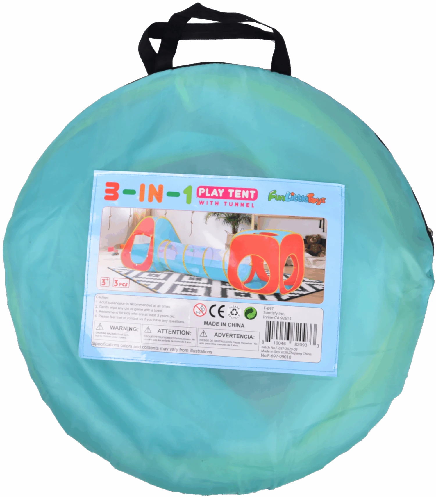The 3-in-1 Kids Adventure Pop-Up Play Tent includes three separate tents which come together to form the entire Adventure Set: a square-tent playhouse, a triangular play tent, and a play tunnel. Your child is guaranteed to have countless hours of fun playing with this innovative and special design of a kid’s tent.ย All it takes is a moment to both setup and put away. Near instantaneous setup is at your fingertips, with no extra tools required for the job. The 3-in-1 Tent folds together in a snap, allowing for convenient storage.