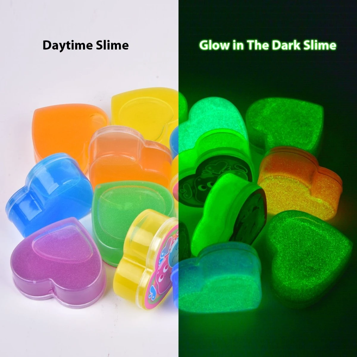 - Versatile & Captivating: Each slime’s unique glow-in-the-dark effect captures children’s fascination. They can stretch, squeeze, and shape it for hours of tactile amusement and creative play, making it a perfect Valentine’s party favor and classroom activity.