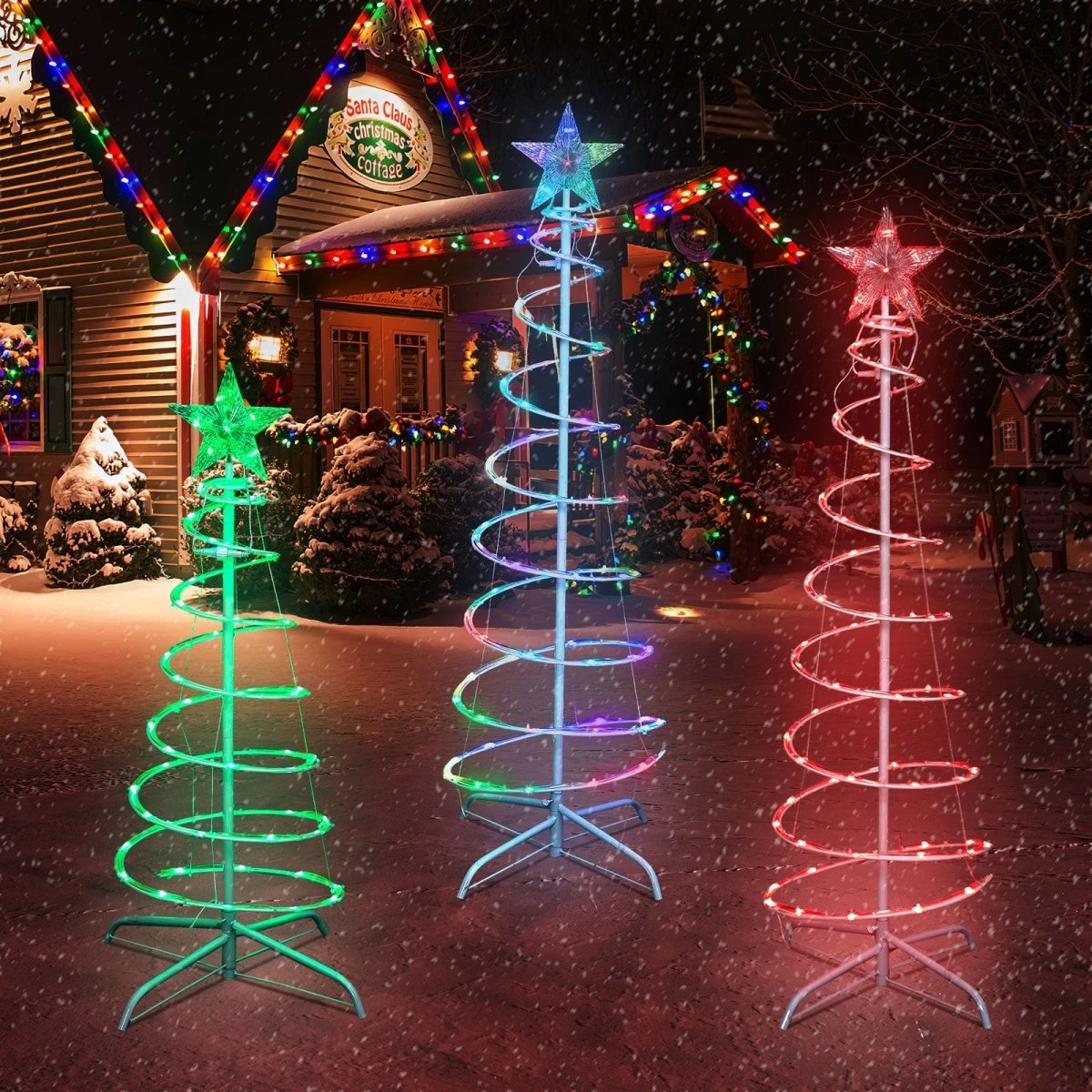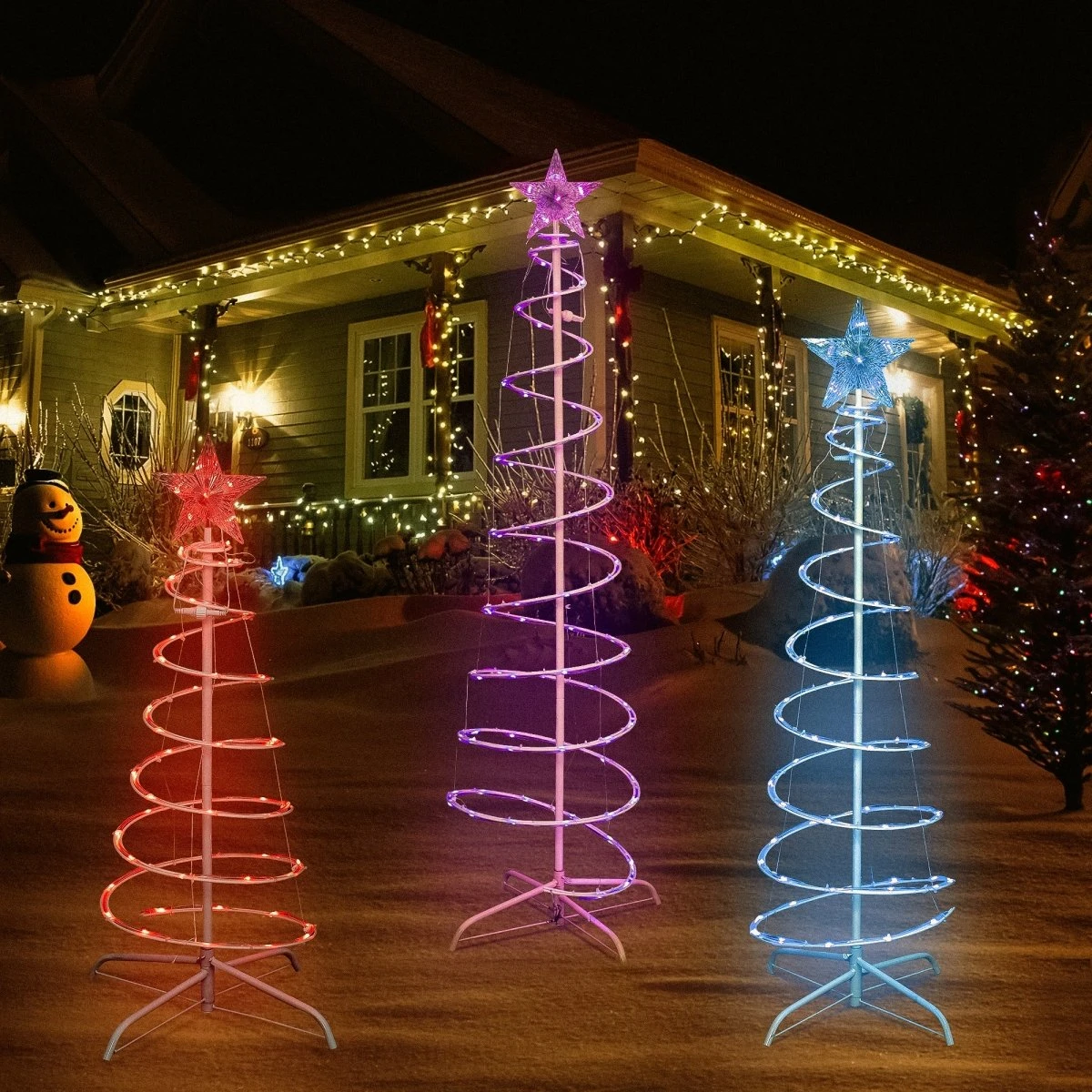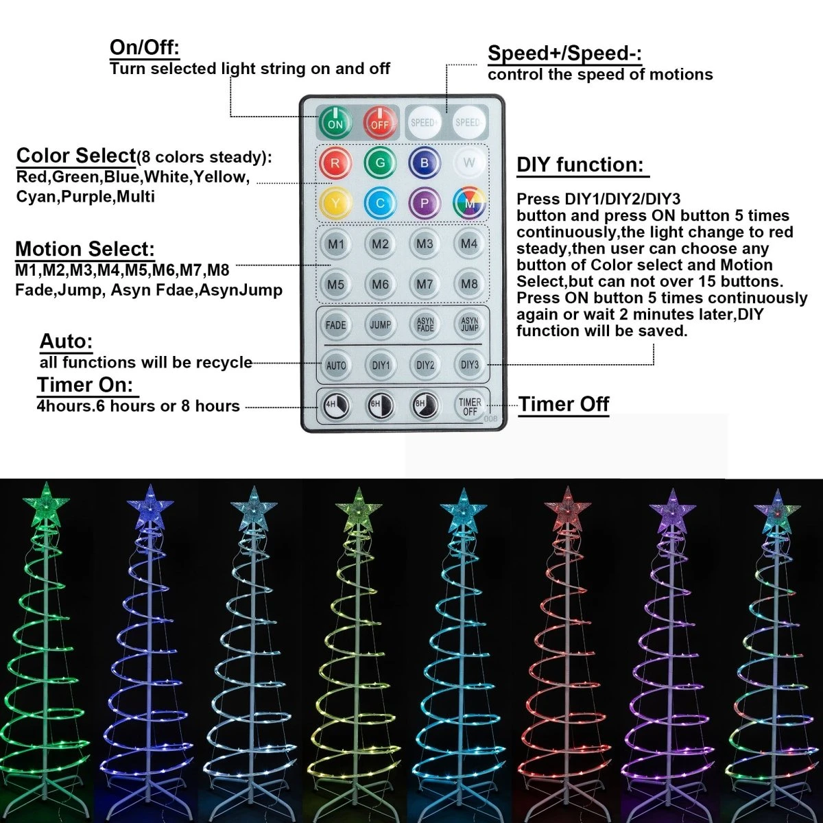 - Elegant Spiral Design &ย Vibrant LED Illumination:ย A contemporary twist on traditional tree lights, this spiral design offers delightful visual appeal, creating dynamic and captivating light display. Theย RGB light show features 4 different modes and can be adjusted by single or joint control color change all at once.ย