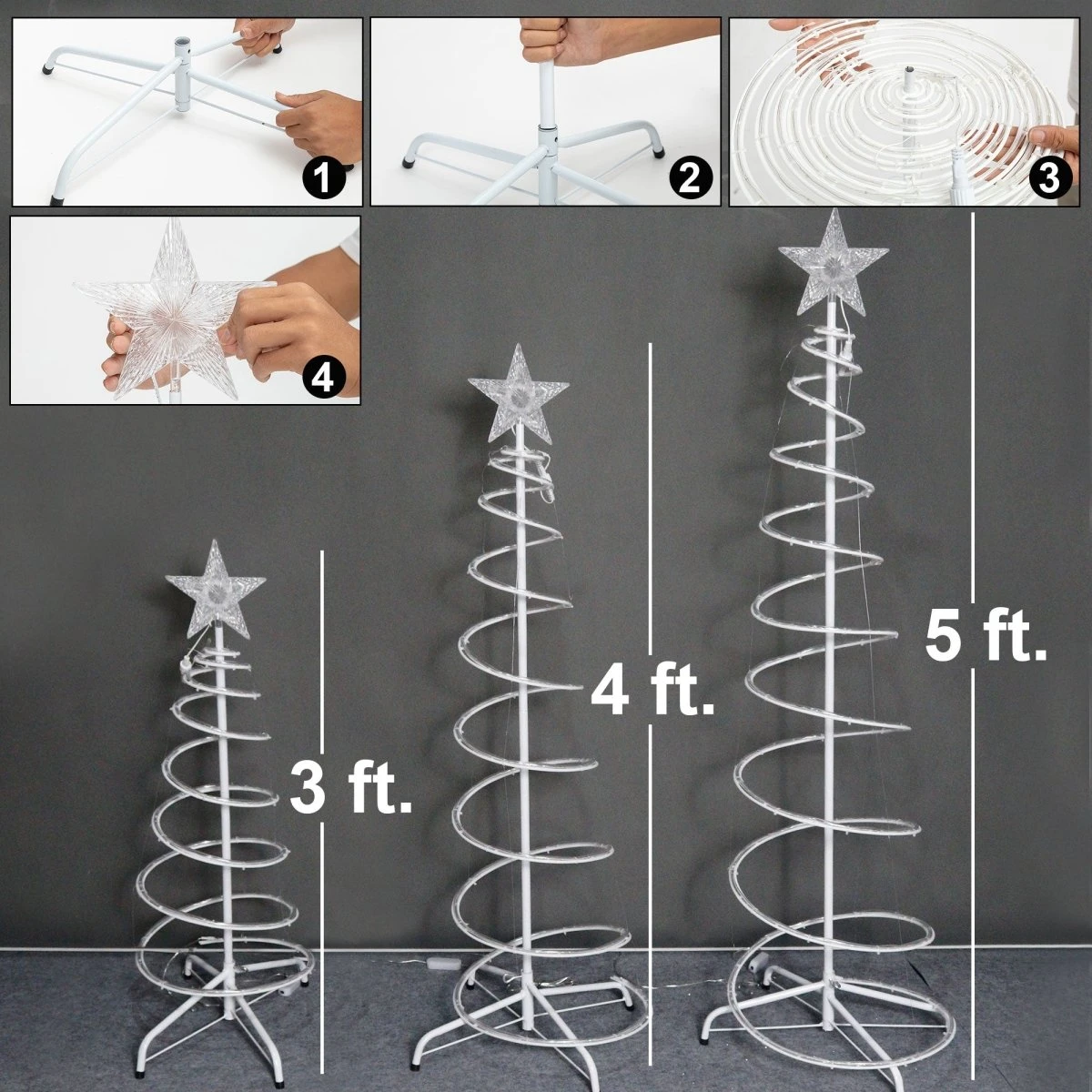 - Complete Spiral Tree Set:ย Comes with 3 different heights of this spiral tree, sizes included in the package are 3ft, 4ft and 5ft along with UL low voltage 5V1A transformer, ground plug and remote control. Also includes introduction to the basic properties of the product.