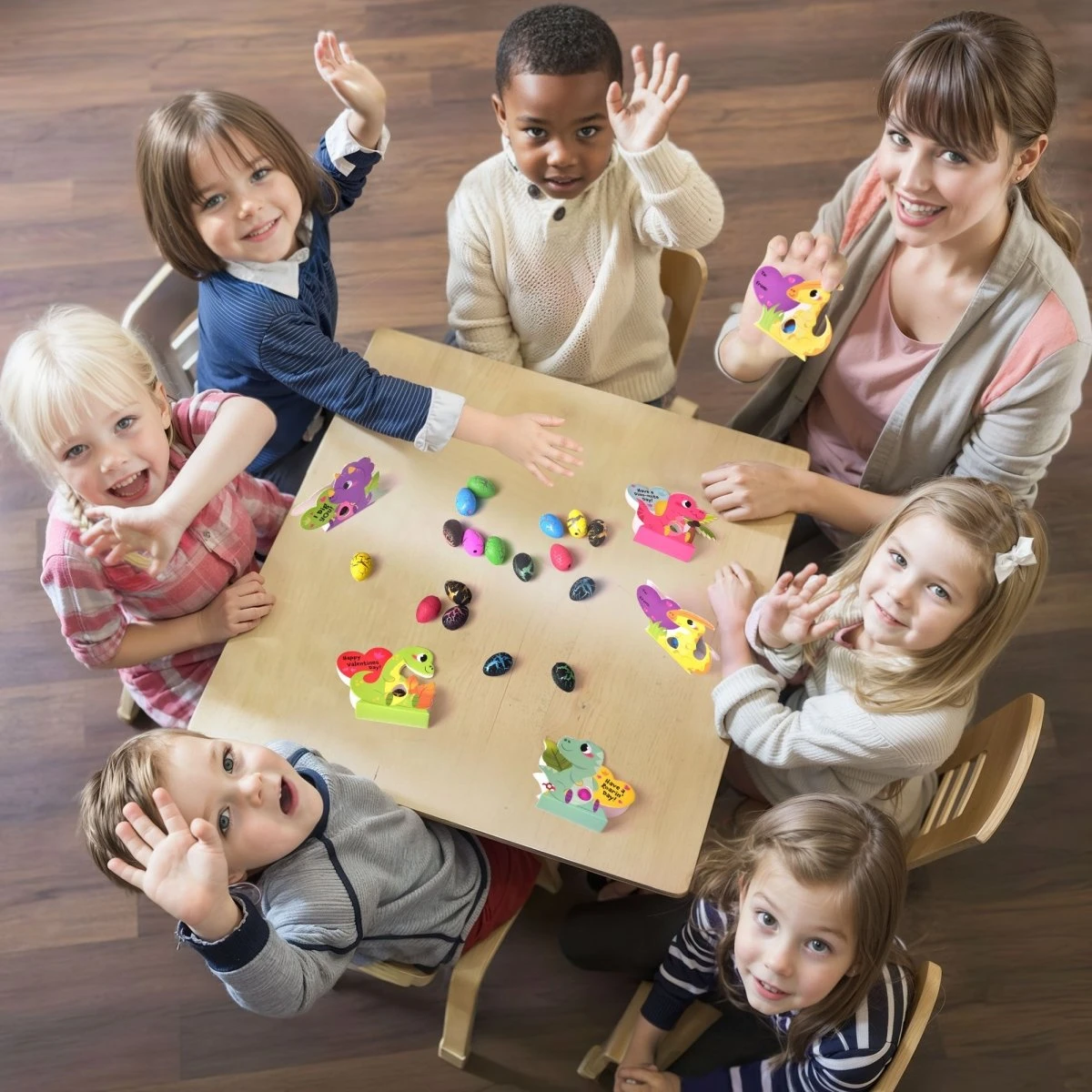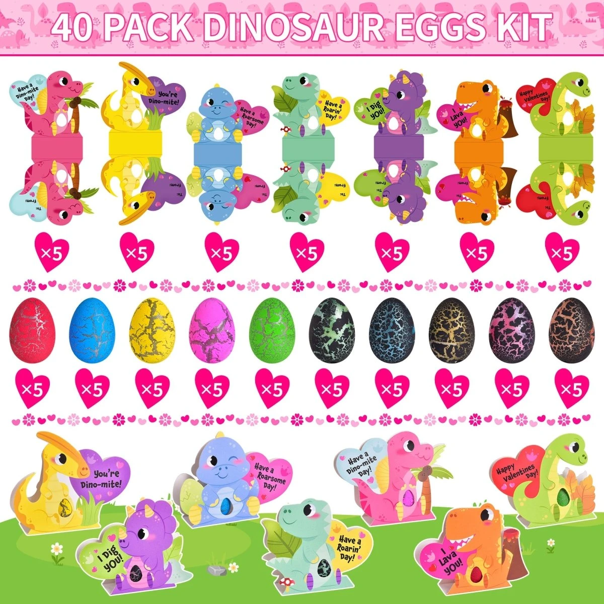- Valentine’s Gift Bundle: This bundle contains 40pcs colorful hatching dinosaur eggs and 40pcs 3D dinosaur-themed greeting cards for kids, one adhesive glue dot (100 pcs). Enough quantity to meet your Valentine’s Day needs.