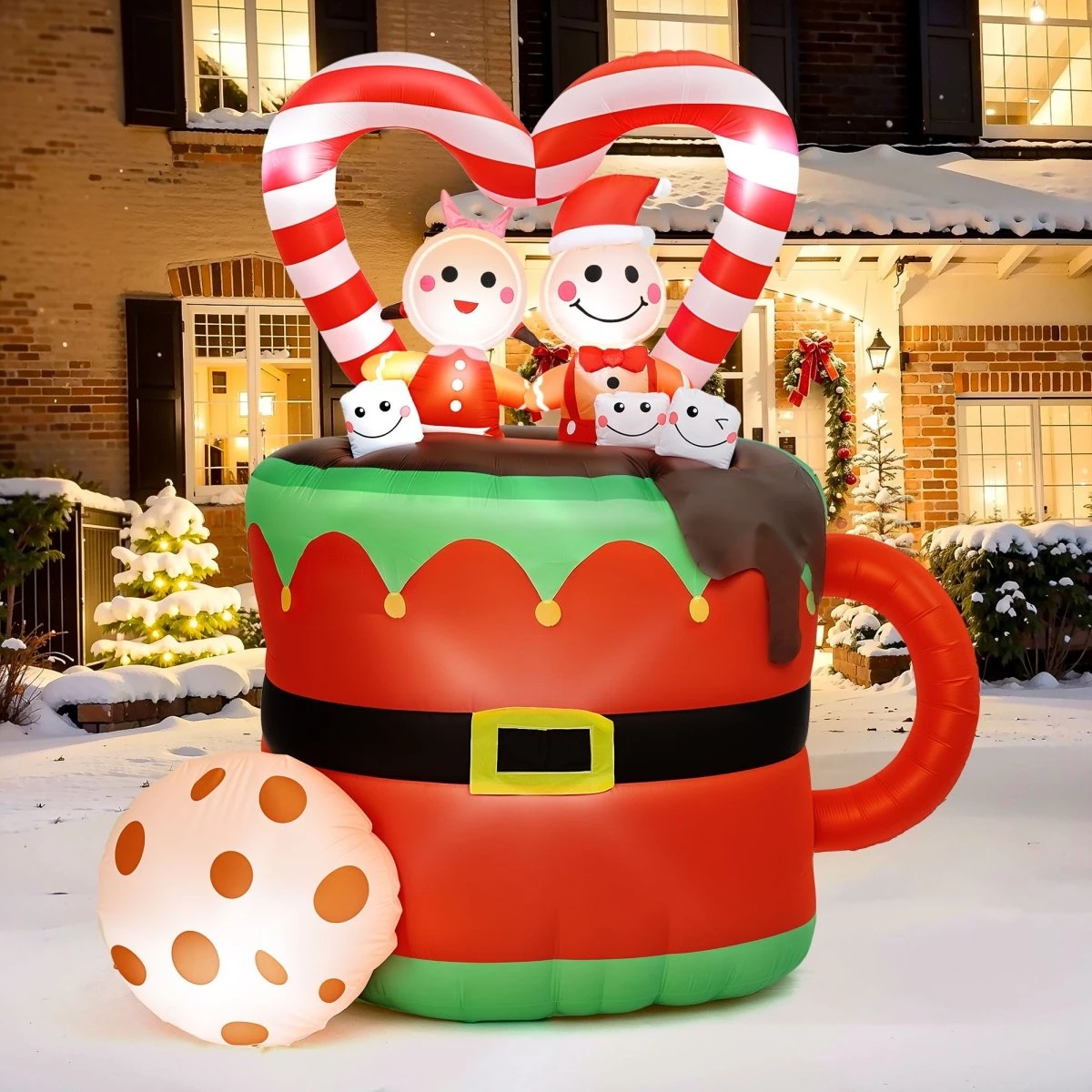 Christmas Inflatable Hotย Cocoa Mugย & Gingerbread Couple Outdoor Props