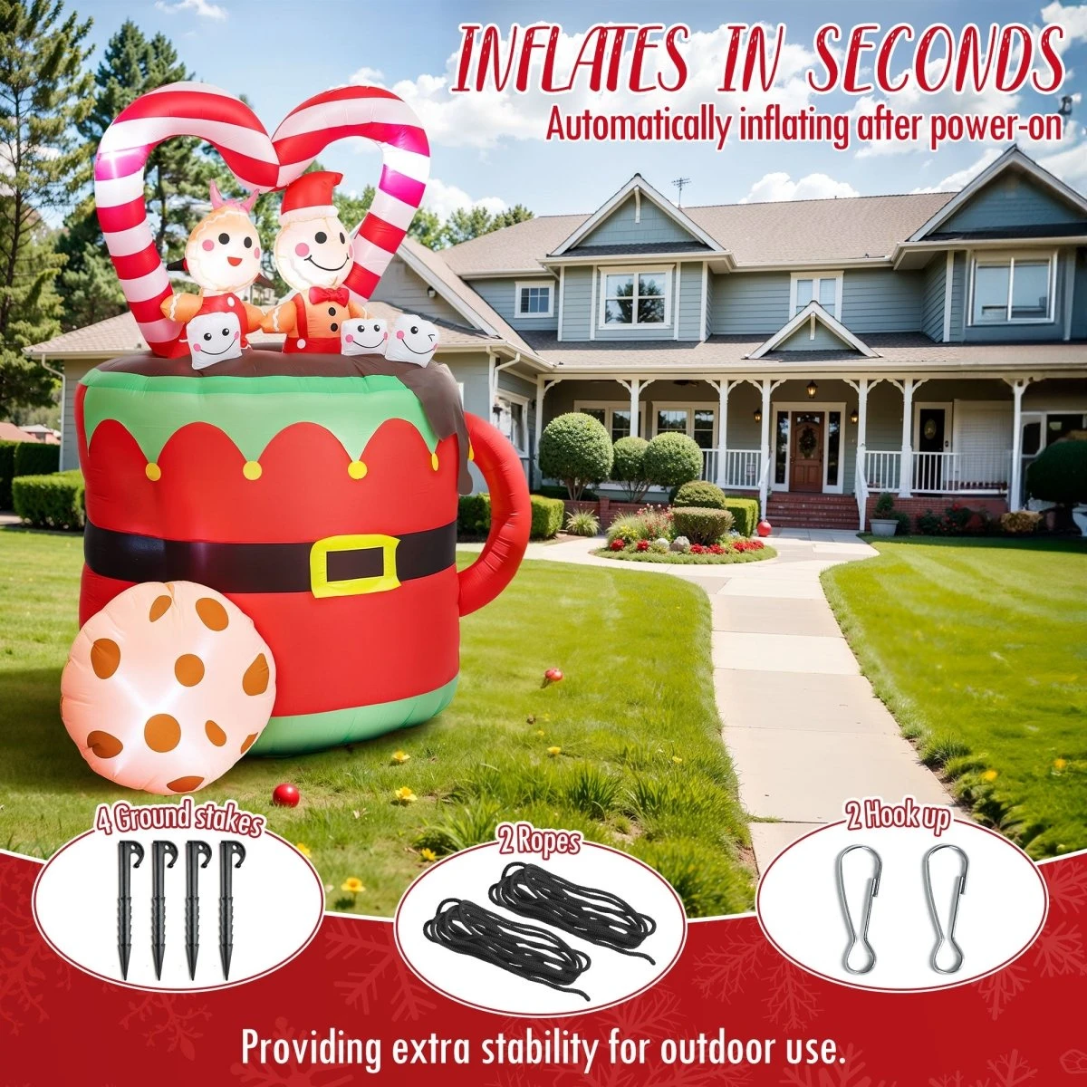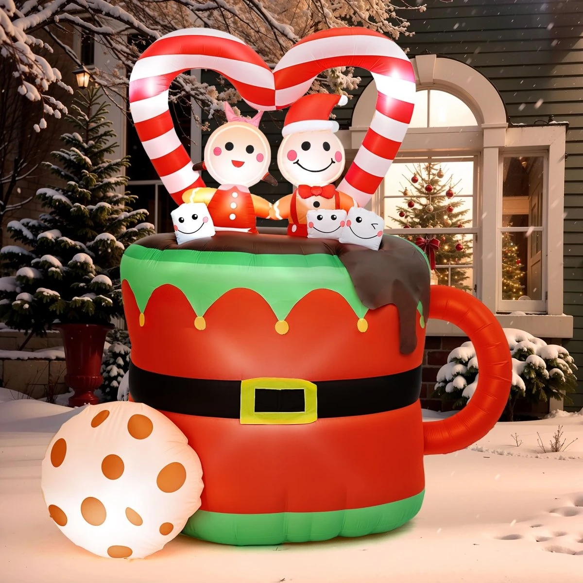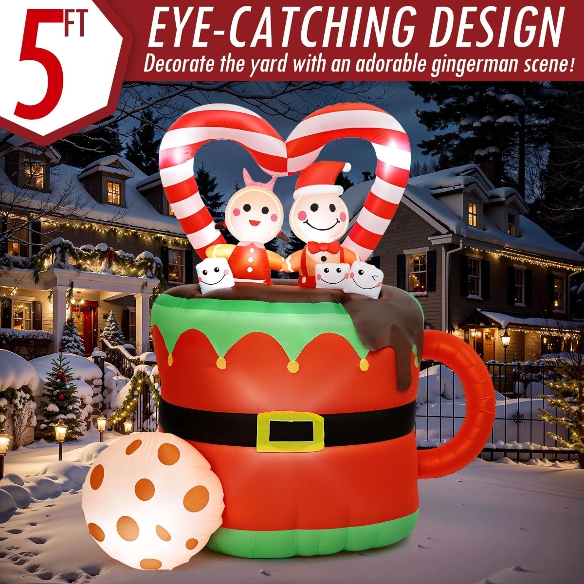 - Warm & Sweet Gingerbread Couple:ย This gingerbread man in hot cocoa mug inflatable features a sweet and delightful Christmas designs elements such as hot chocolate mug, gingerbread man couple, marshmallow, candy cane and cookie.