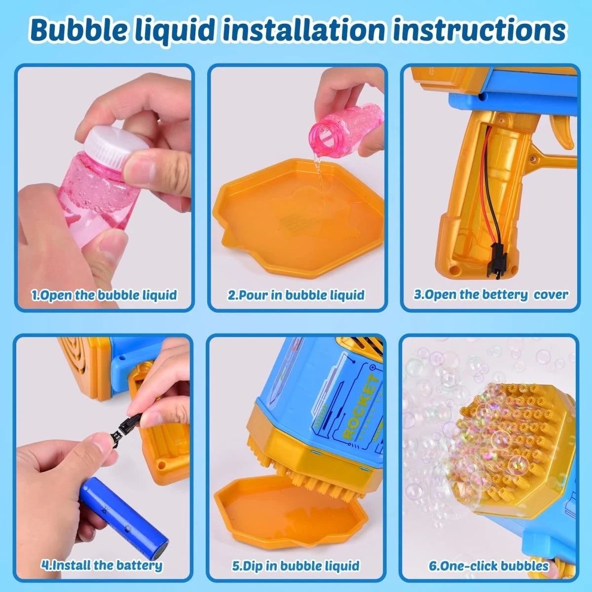 Durable Construction: Made with high-quality materials, the 69 Holes Bubble Machine Gun-Big Rocket Boom Bubble Blower is built to last.