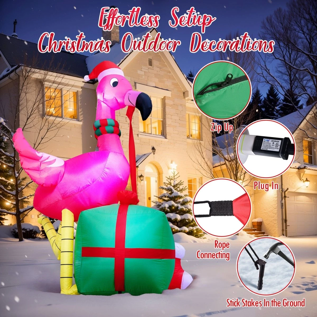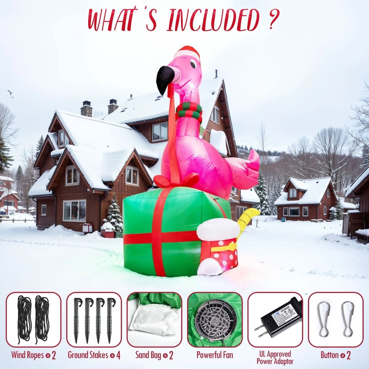- What’s Inside: Package includes 1 inflatable flamingo measuring 6ft tall. A large and suiting size for outdoor Christmas decor that is perfect to display at your backyard, garden, lawn and patio.