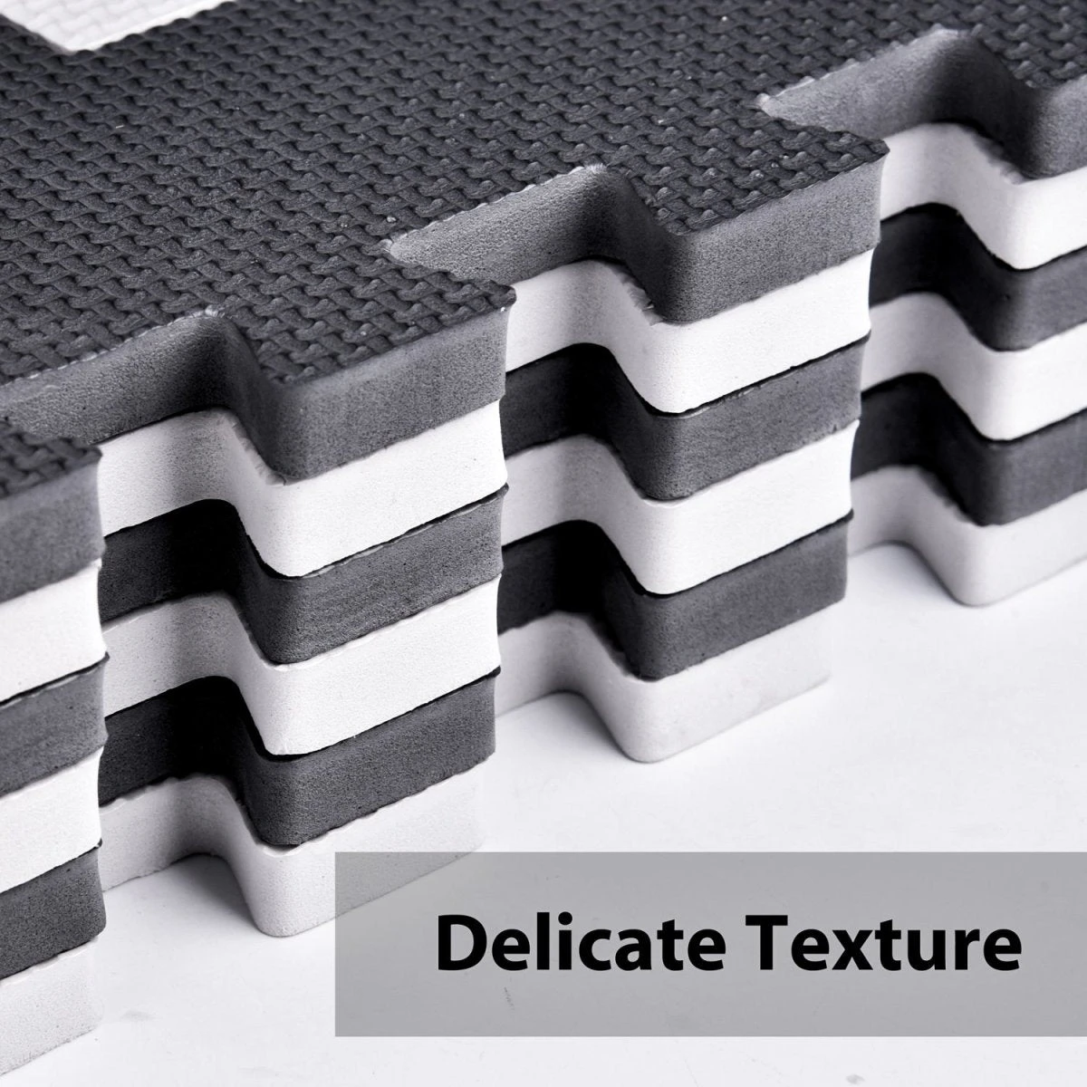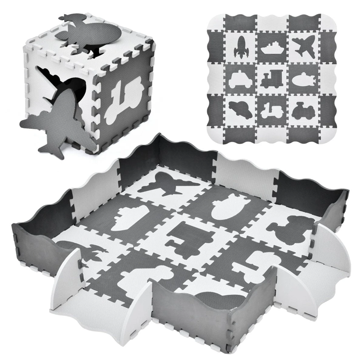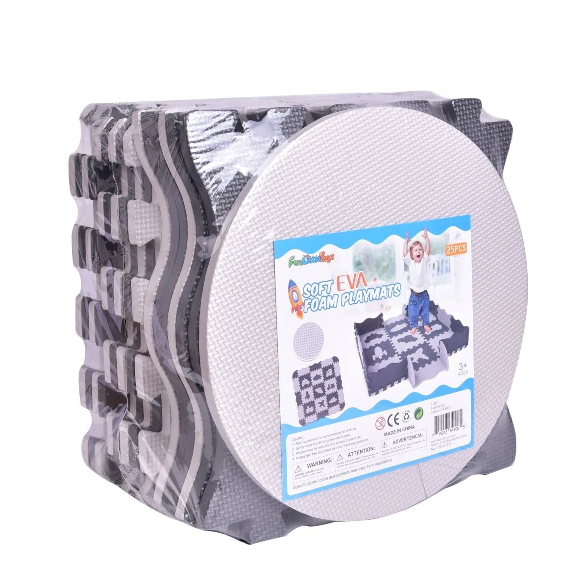 - 25 Fun Interlocking Foam Tiles: This Baby Playmat Foam includes 25 pieces of interlocking foam tiles! It includes 9 tiles of foam play mat + 12 tiles of fence mats + 4 tiles of gate mats.