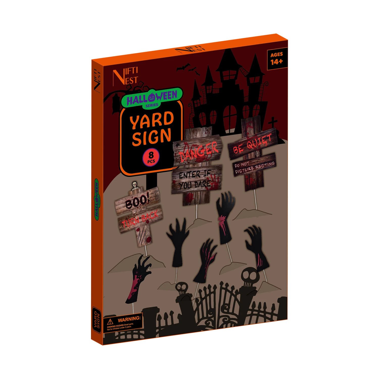 Great value set: This set of Halloween yard decorations includes 3 warning signs, 5 fake severed hands, and 8 sticks. It is perfect for your Halloween yard decoration and haunted Halloween party.