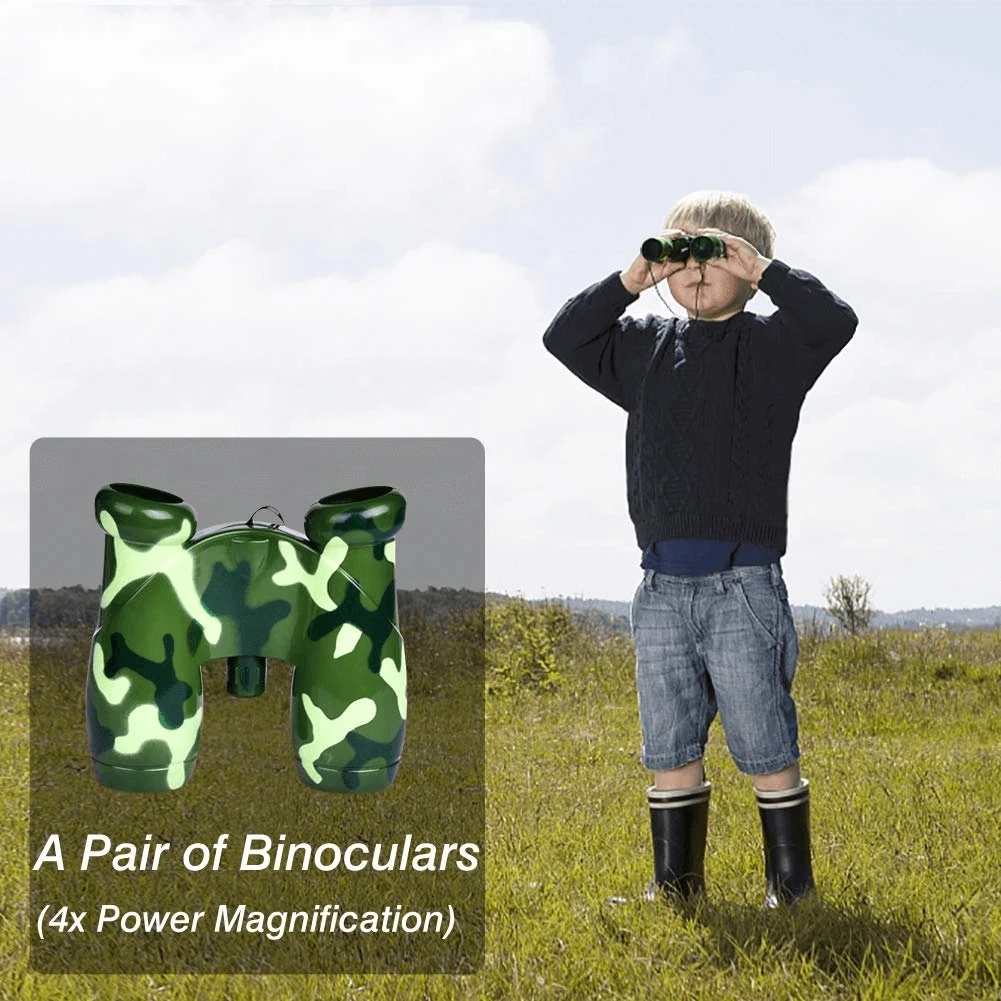 The Bug Catcher Kit for Kids contains a selection of unique, bug-catching toys and tools. Inside the kit, little scientists will find a pair of binoculars designed with an incredible 4X Zoom, making sure they donโt miss any part of natureโs beauty, no matter how far. Also included is a premium-quality directional compass, magnifying glass, butterfly net, tongs, imitation insects, observation cups, and so much more! The kit is guaranteed to provide your little explorer countless hours of wholesome entertainment.