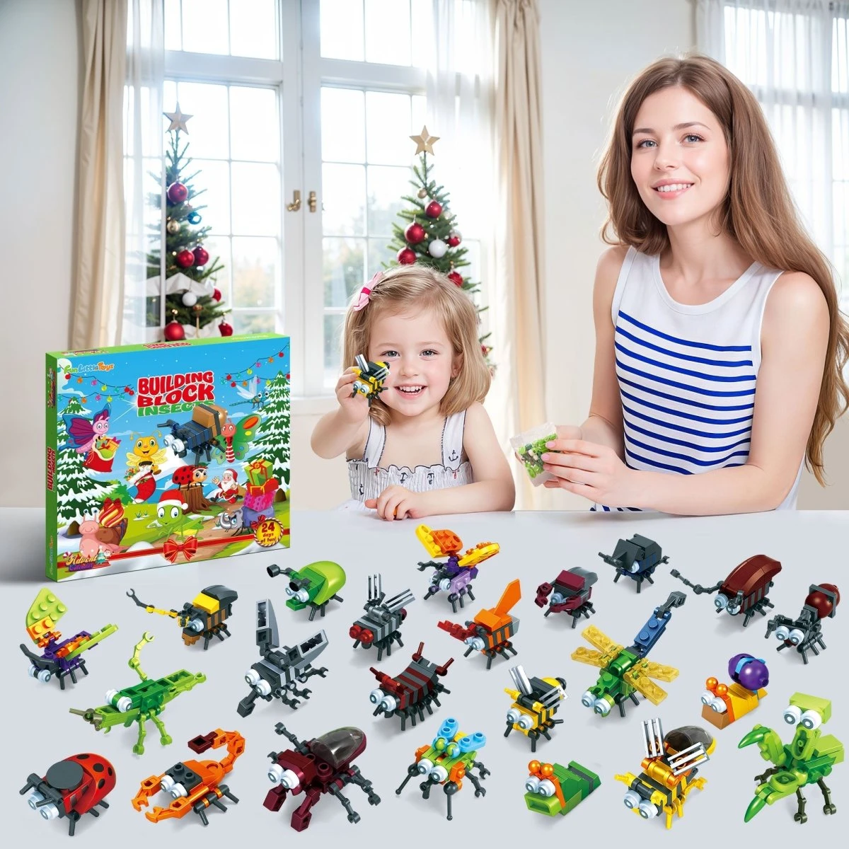 Features of theย Christmas Advent Calendar Insects Building Blocks: