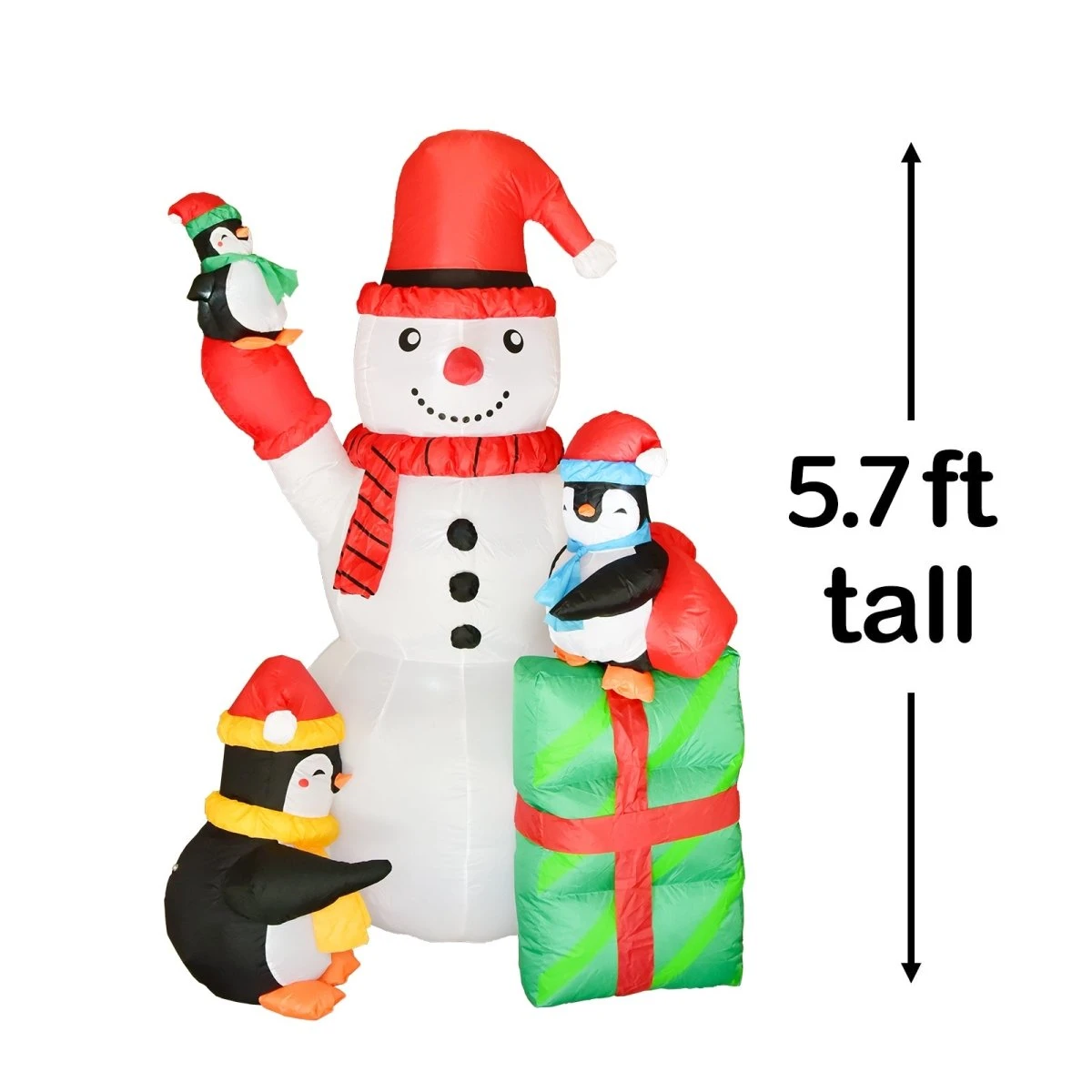 ? EASY ASSEMBLY – Stabilize the beautiful Christmas outdoor decoration with ground stakes and ropes, which are included in the set. This trio of penguins, Christmas gifts, and the snowman inflate in seconds! Easy-to-follow instructions are included with this set.