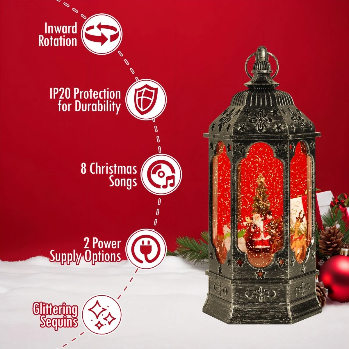 Features of theย Christmas Musical Snow Globe Lantern:ย
