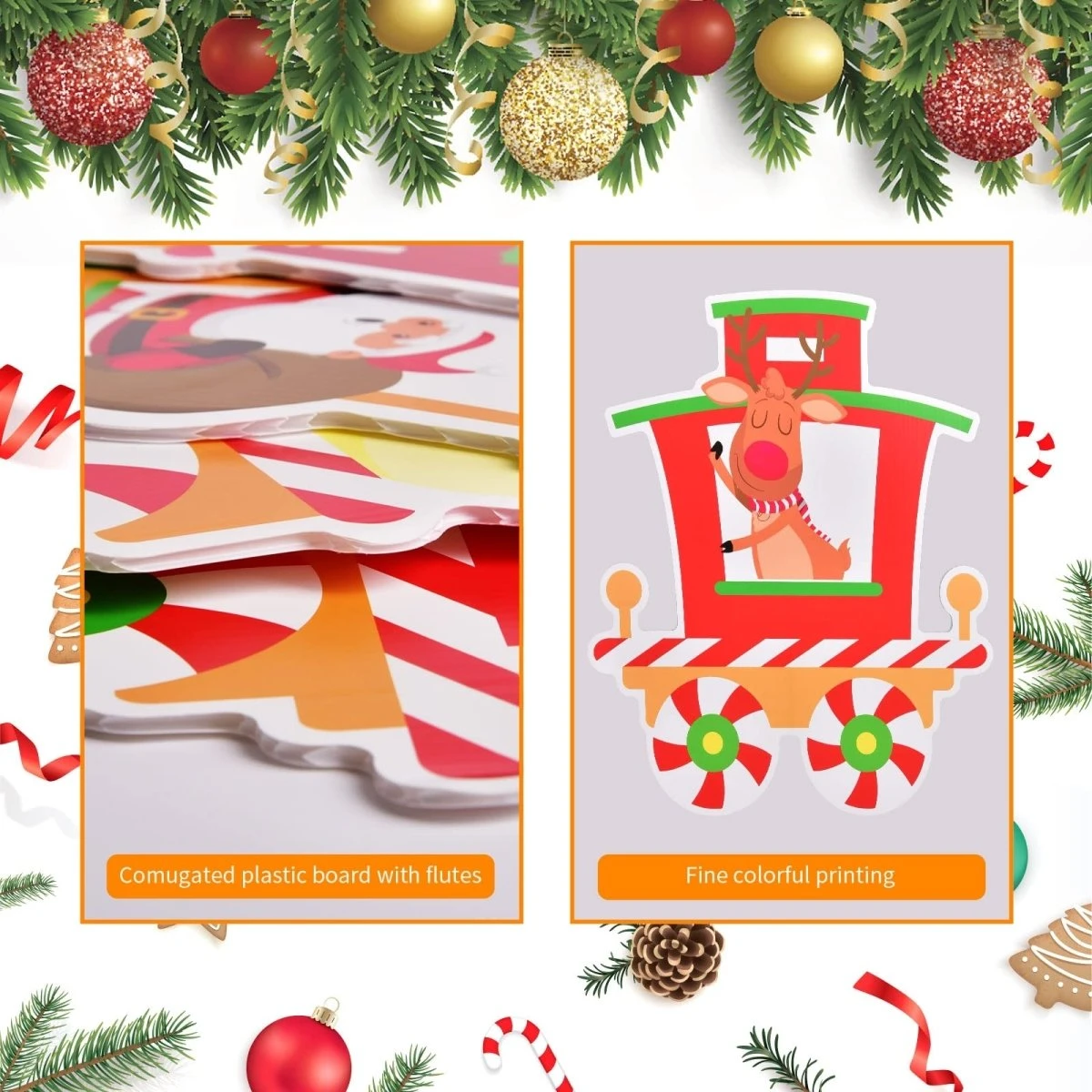 High quality: Our Christmas outdoor yard decorations are made in high quality, thick commercial grade corrugated plastic, which are durable, waterproof, fade, and bad weather resistant.