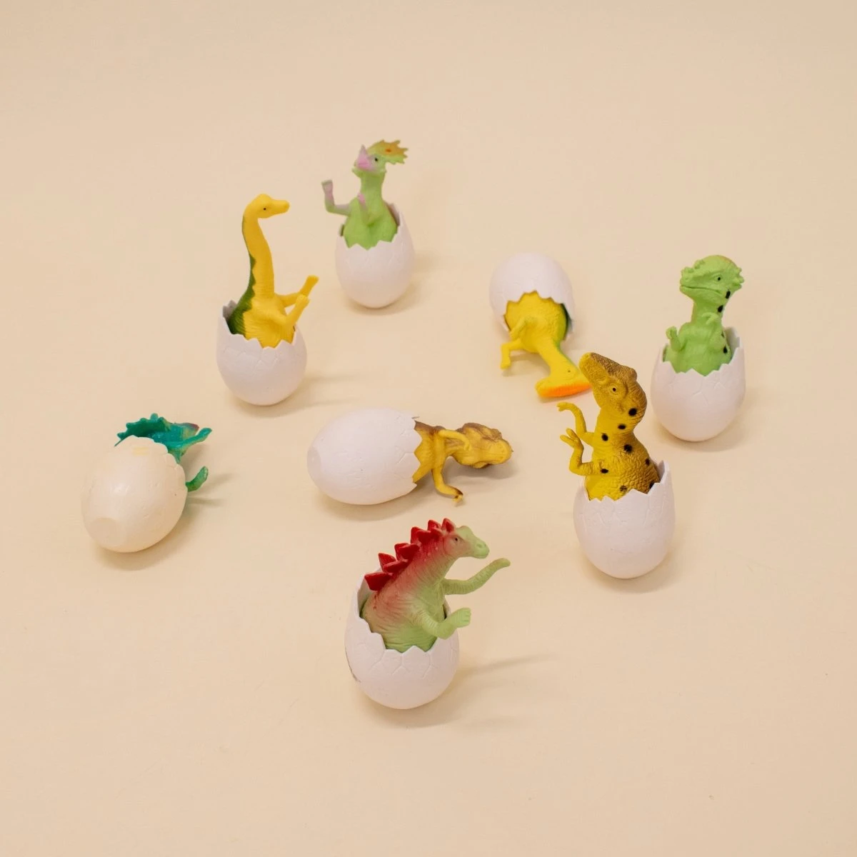 The Dino Eggs from Fun Little Toys provide a precious collection of 8 unique dinosaur eggs for kids to enjoy. Each baby dino is attached to the egg and comes sporting fun colors & tantalizing textures: baby blues, yellows, deep reds, and light greens delight the eyes while stimulating the mind. Hide these cute Jurassic classics all around the house and allow children to experience the joy of discovery with each dinosaur egg! Thereās nothing more incredible than using the power of imagination during playtime ā and this product makes it effortless to accomplish just that. This premium prehistoric product packs in dino eggs which transform playtime into a lesson to be used in real life, portraying true-to-life dinosaurs discovered by real-life paleontologists over the centuries. The awe-inspiring Tyrannosaurus Rex, the short-legged Stegosaurus, and 6 more dynamite dinos occupy each of the smooth dinosaur eggs. Use these awesomely ancient recreations as a classroom gift for your kiddos, or as favors to hand out at the next birthday bash. Endless entertainment awaits whichever occasion these friends come out to play. Fun Little Toys makes safety a priority, and these little guys are no exception. Providing safe, smooth & enjoyable dinosaur eggs for kids is the goal with this dino party pack ā and itās safe to say, mission accomplished! Made entirely from a smooth rubber material, parents can rest easy knowing their kids are playing safely. Recommended for ages 3 & up.