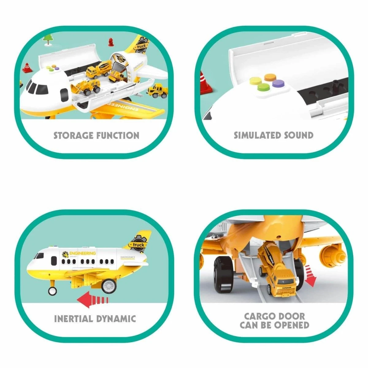 Load up the construction engineering cargo airplane with various toy car vehicles and fly away! This multi-functional toy plane is perfect for kids that enjoy imaginative play. Bring it home today to explore ways to play with your little ones, and watch your plane lover light up with joy.