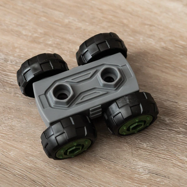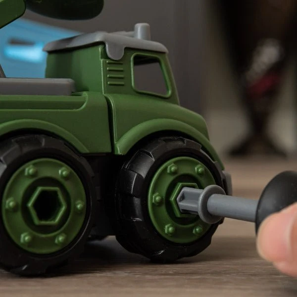 - 5-in-1 friction powered car carrier truck includes a double-deck trailer, 2 DIY take apartΒ trucks (rocket launcher and radar vehicle), and a push-and-go car; screwdriver is included
