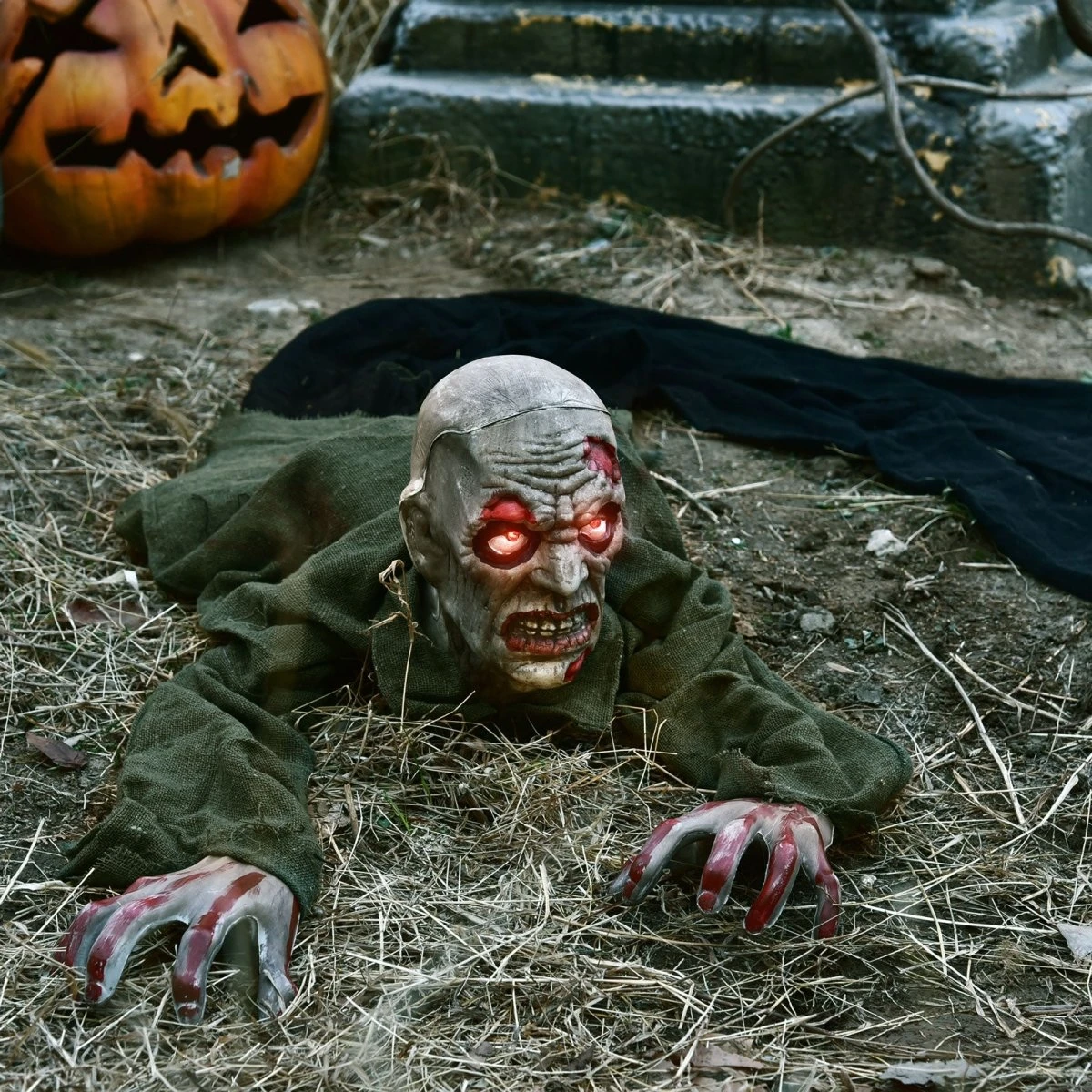 - Classically Creepy: The Halloween Crawling Zombie from Fun Little Toys makes for classic & creepy Halloween lawn decorations for your home this season. Youโll delightย the neighbors and impress the guests with this graveyard ghoul