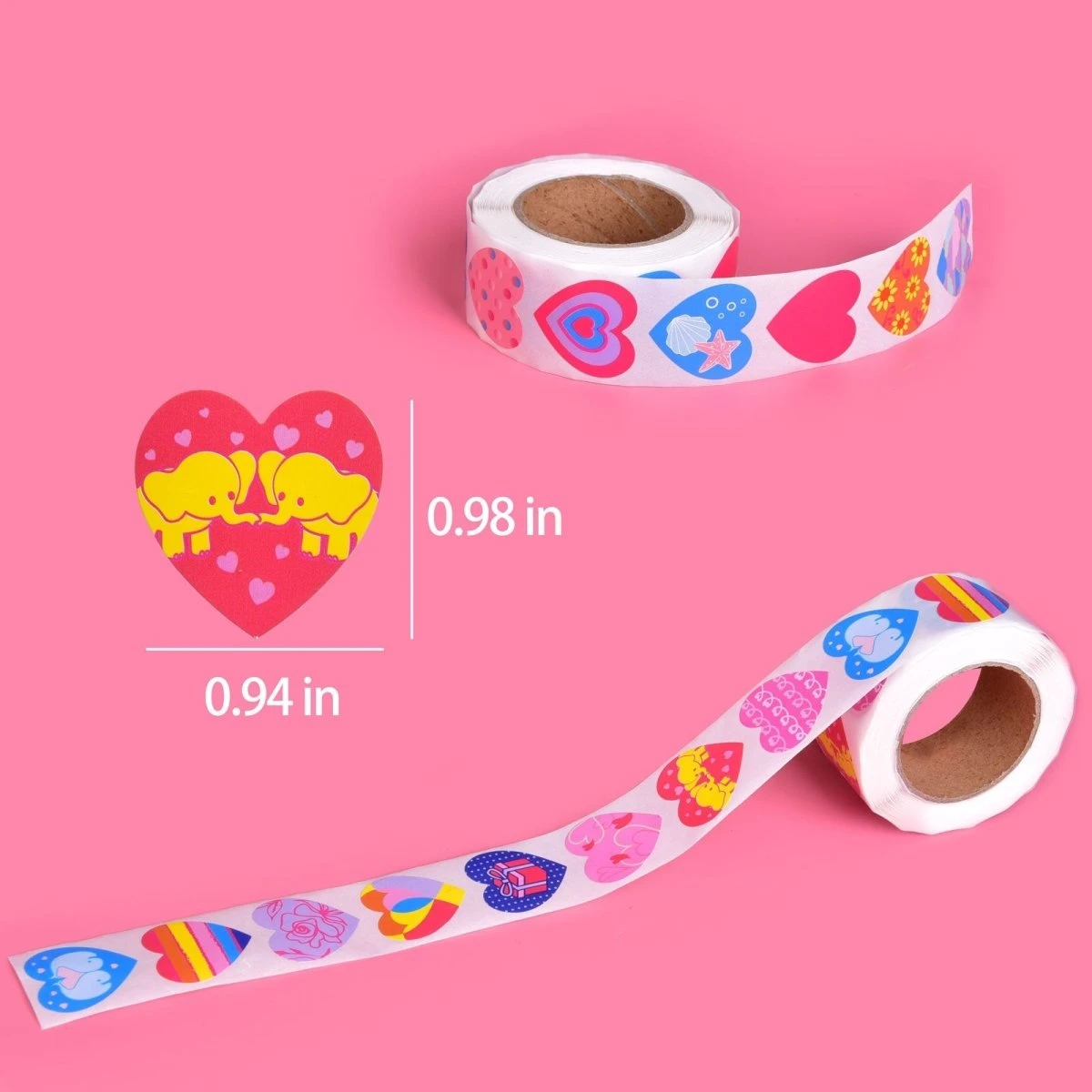 Unique Design:ย Valentineโs Heart Stickers, including 1000 pieces of hearts stickers with 16 unique designs. There are 2 rolls of 500 heart-shaped stickers in 8 different styles and the measurement of each heart sticker is 0.94 inches.