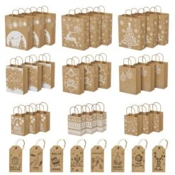 24PCS Bulk Christmas Kraft Paper Gift Bags With Handles
