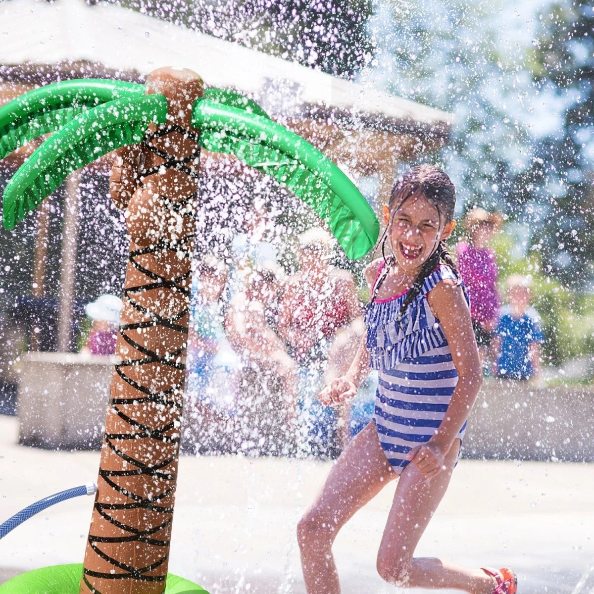 Splash around with the Inflatable Palm Tree Sprinkler for a bit of island paradise
