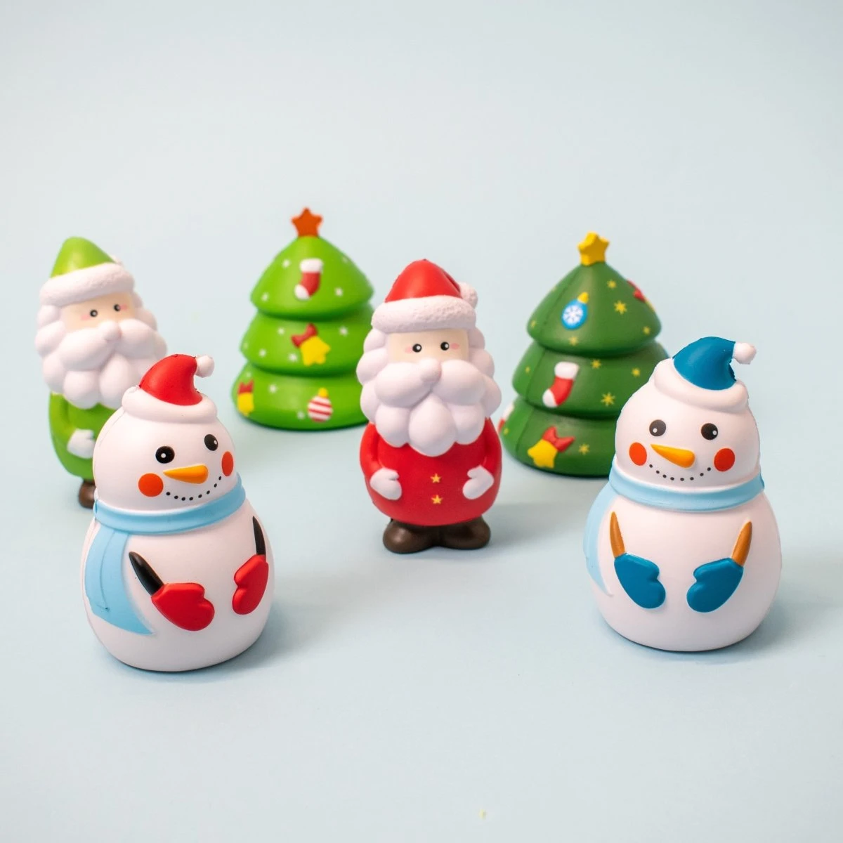 - Cute Colors:ย Each Christmas squishy toy for kids comes displaying bright, bold colors of green, red, blue, and more. This truly is a snowman, tree, and Santa squishy pack thatโs going to captivate the whole family