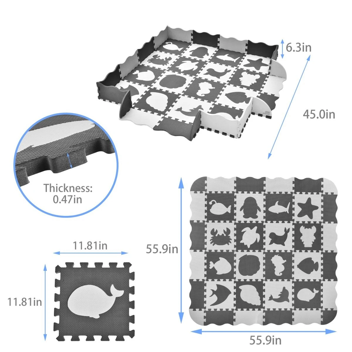 Versatile Design:ย Product Featuresย 9 Floor Mats, 12 FunFence Mats, and 4 Gate Mats