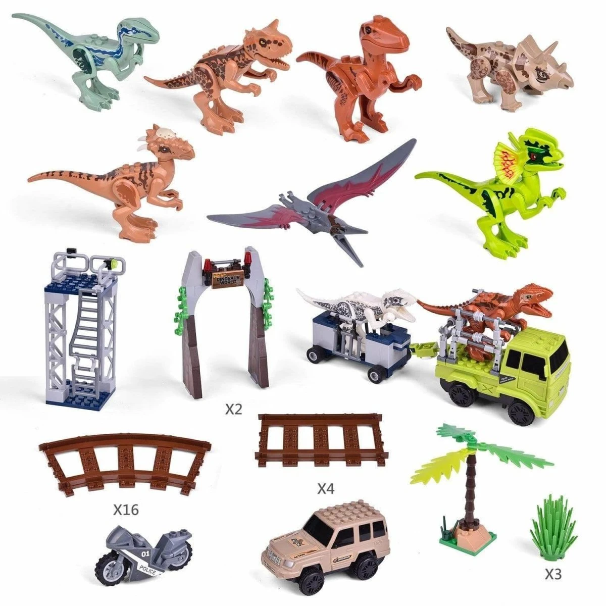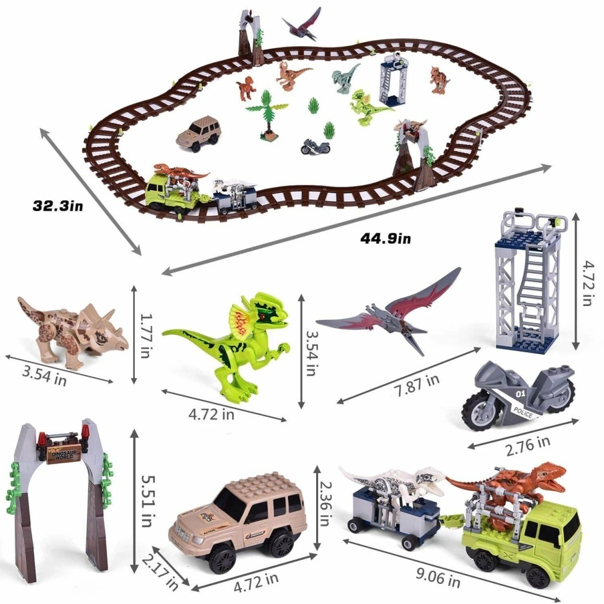 - Building Blocks: DIY dinosaur-themed railway track set that contains 385 pieces of building blocks. Recommended for kids ages 6 & up