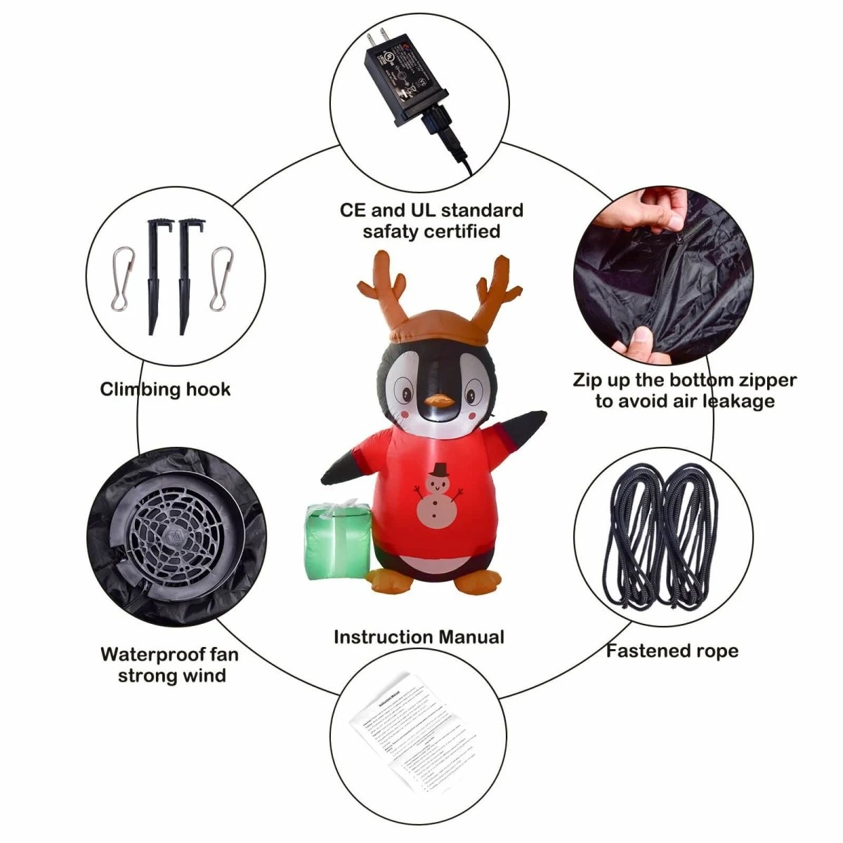 - Fun and Cute Design: The Present Penguin features 1 Penguin measuring 4โ Feet in Height Alongside Holiday Accessories