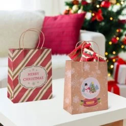 Christmas Kraft Paper Bags With Handles & Tissue Papers