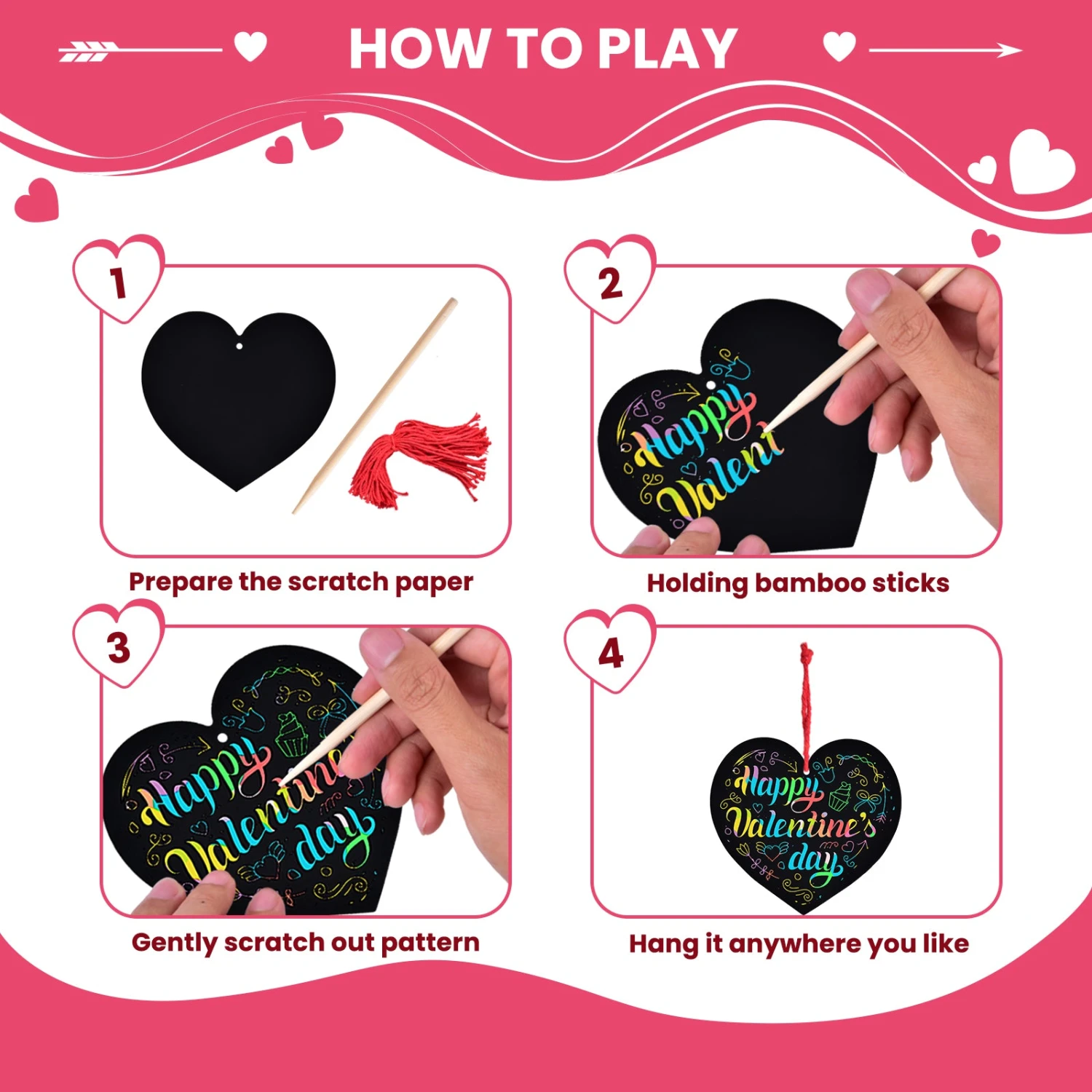 - Scratch Kit includes: 42 scratch papers (5.5*2.2in), 21 wood sticks, 6 gift envelops, 4 different color templates, and 42 red lines to hang your artwork