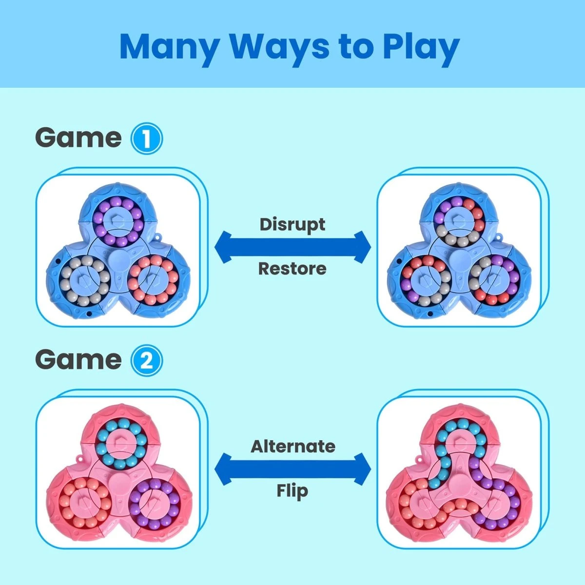 Rotation, Movement, Puzzle-Solving: It features a unique two-in-one decompression function. It is a fingertip gyroscope toy that spins 360 degrees not only on your fingertips but also on the table. It is a puzzle toy that the beads move around, mix up, and then rearrange into the same color groups.