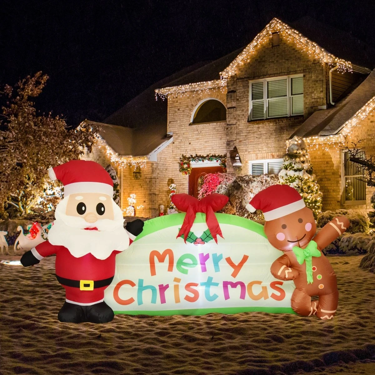 Celebrate with this Inflatableย Santa and Gingerbread Manย Decoration