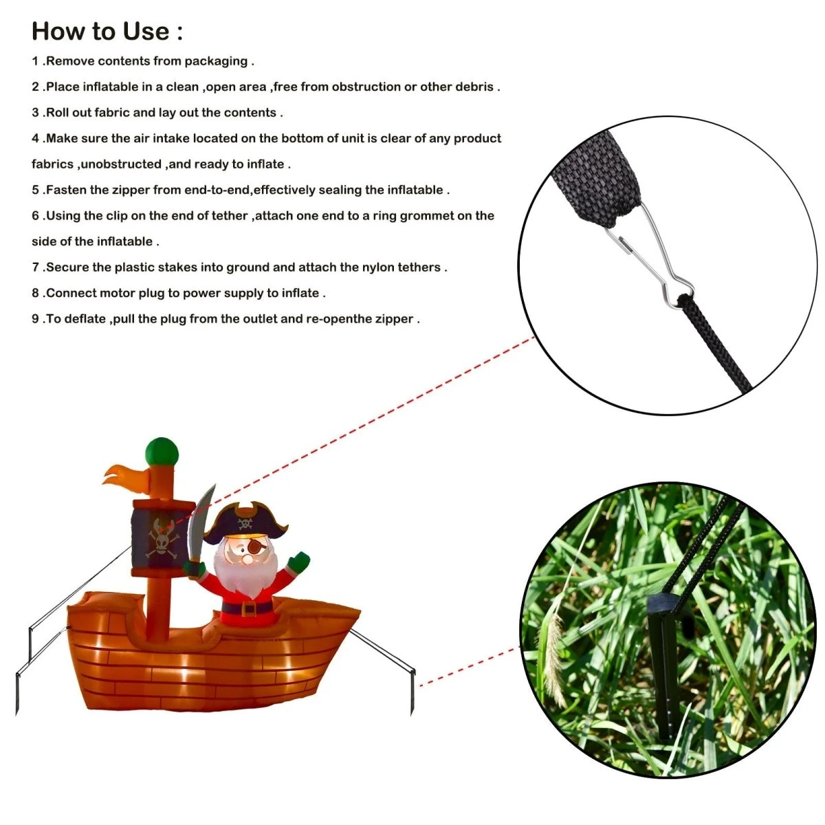 The Sea Santa from Nifti Nest features 1 Sea Santa Claus and 1 Pirate Ship measuring 6’ Feet in Height. This amusing seasonal design comes with the Santa Claus you know and loves on a larger-than-life Pirate Ship! Fare the seas in seasonal style with these Christmas inflatables which include Santa with an Eyepatch, and Saber on a classic Ship flying the Pirate Flag. The Sea Santa is packed with a Power-Duty Blower making for Christmas decorations and outdoor yard centerpieces promised to power through typical weather conditions. Nifty Nest designed 5 Bright-Lite Lightbulbs to shine inside the Sea Santa inflatable. The Pirate Ship contains 4 Bright-Lite Lightbulbs throughout the hull and on the mast and 1 Bright-Lite in Santa Claus himself. All of this is to ensure that your holiday decorations glow bright with the joy of the season!