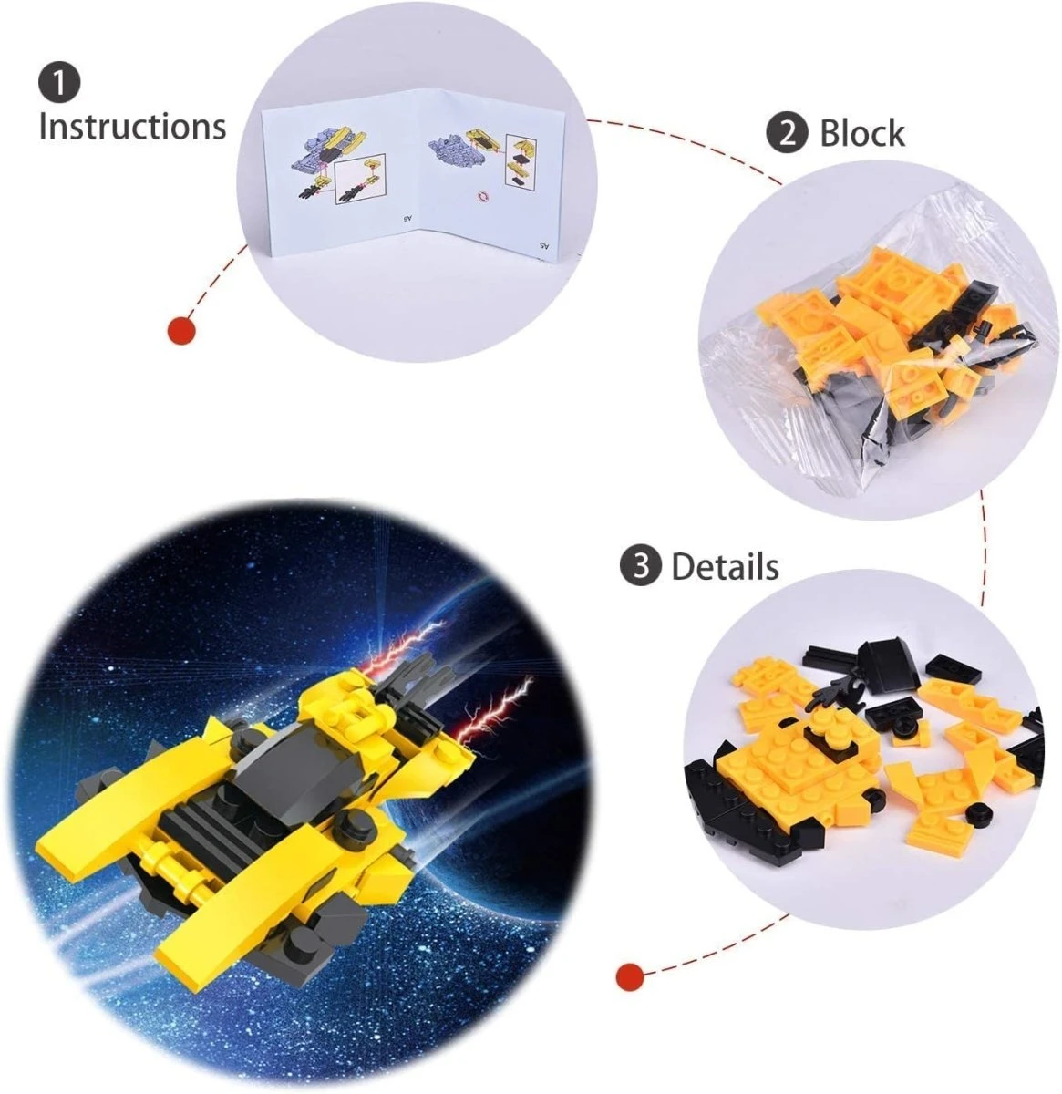 - Set of 12 Space War Themed Building Blocks to build a variety of starships; each comes with an individual box & highly detailed instructions included