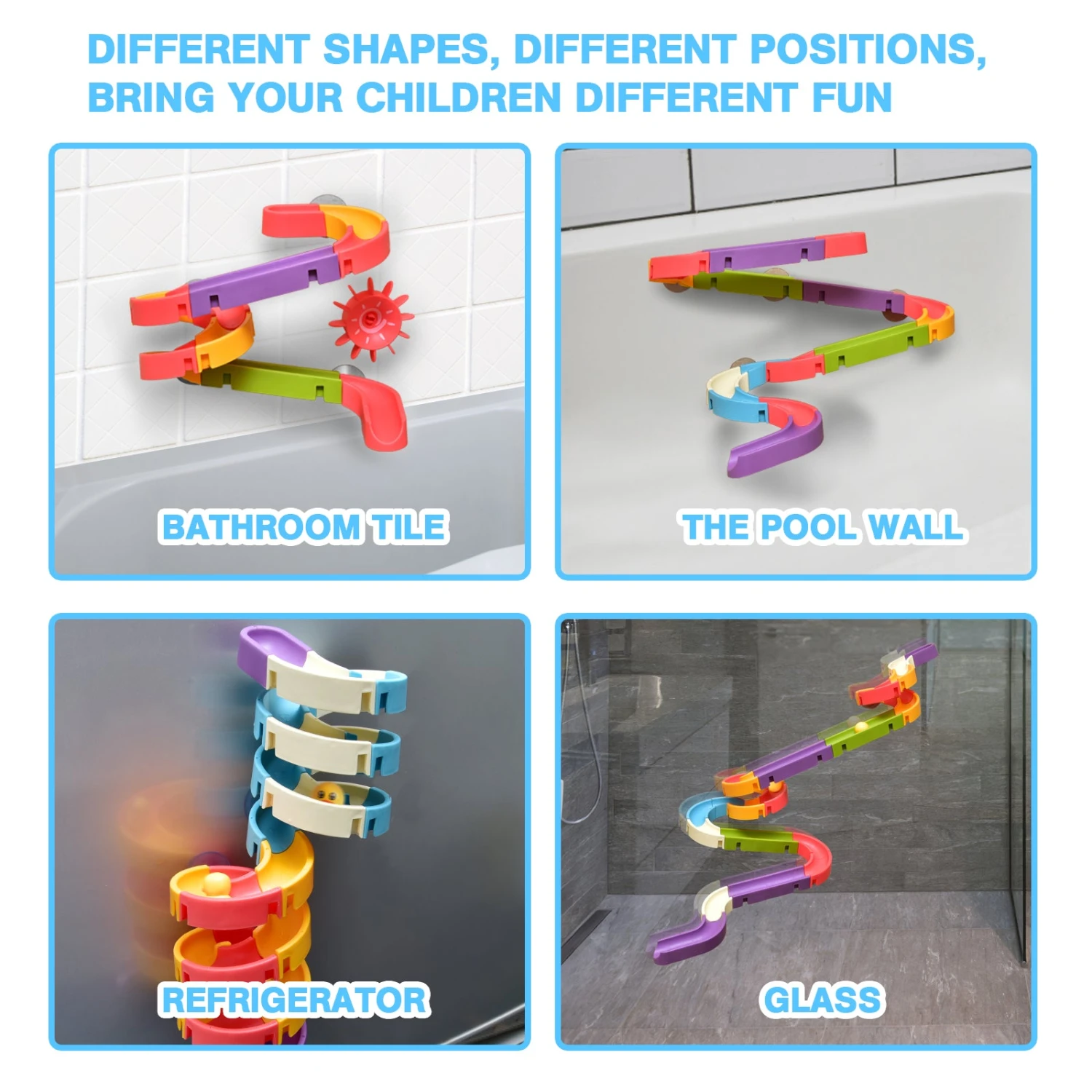- DIY Construction Bathtub Toys: Our bathroom toys are very easy to assemble – the water tracks can be connected??together easily and firmly. Kids can create their unique water tracks through playing, which can stimulate their imagination, and creativity and improve their hands-on ability.
