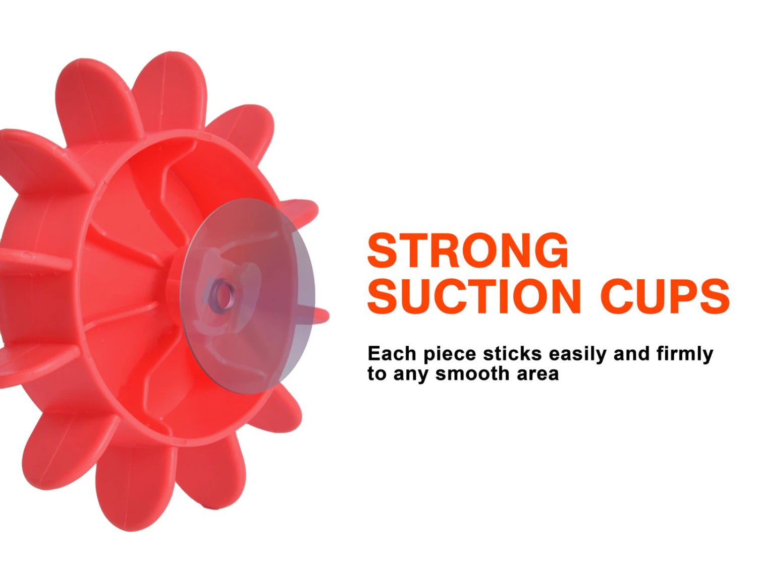 - Multifunctional mold-free bath toys: This toddler bath toy has very strong suction power. You can also stick them on any smooth surface, such as bathroom tiles, window glass, white/blackboards, mirrors, refrigerators, etc. Water increases suction power significantly. Rinse the suction cup completely in warm, nearly hot, tap water. The cup is softer and more malleable as a result of this. After pressing the cup into the selected surface, shake off any extra water. Air pockets that may lead to suction-cup failure are avoided by the presence of water droplets inside the cup.